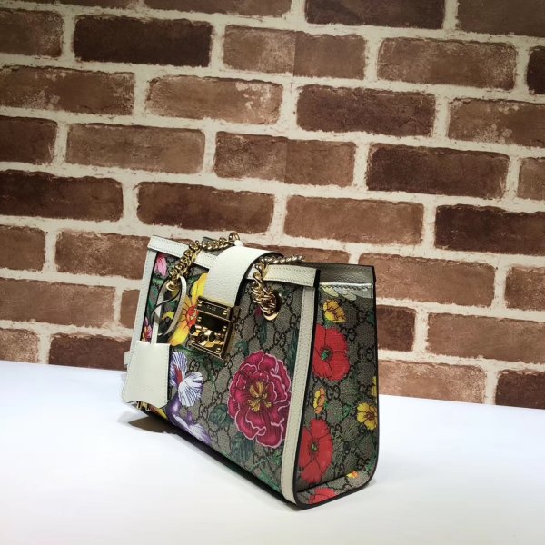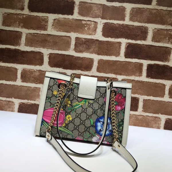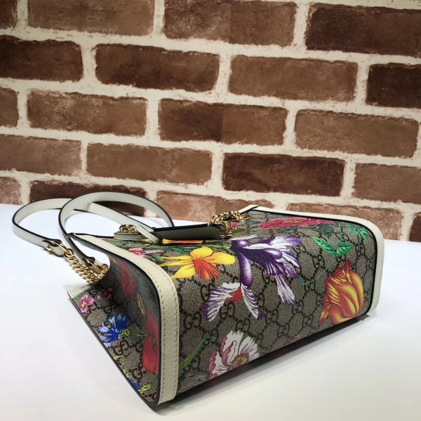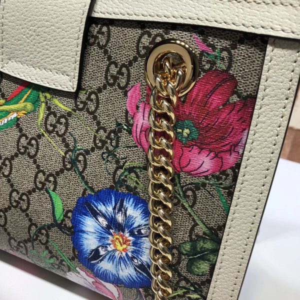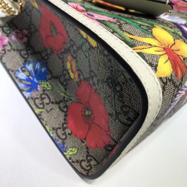GG Supreme canvas with Flora print, a material with low environmental impact, with white leather trim