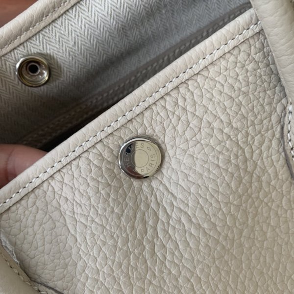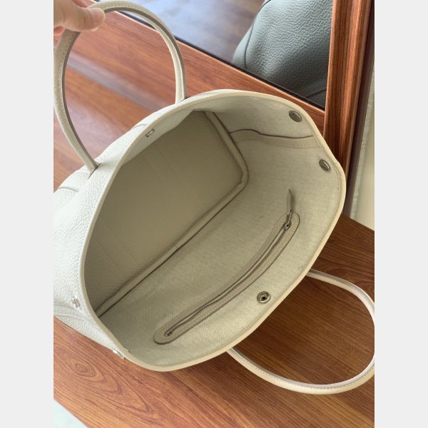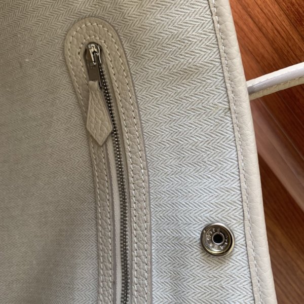Hermes Replica Garden Party Tote in pelle Negonda e Mosaic Toile ha etichettato “Hermes Paris Made in France”. Handles arrotolate