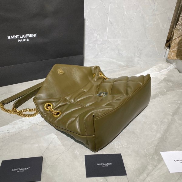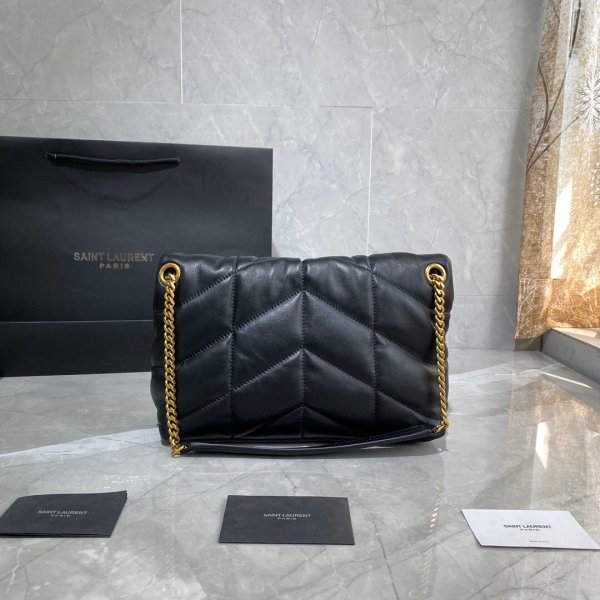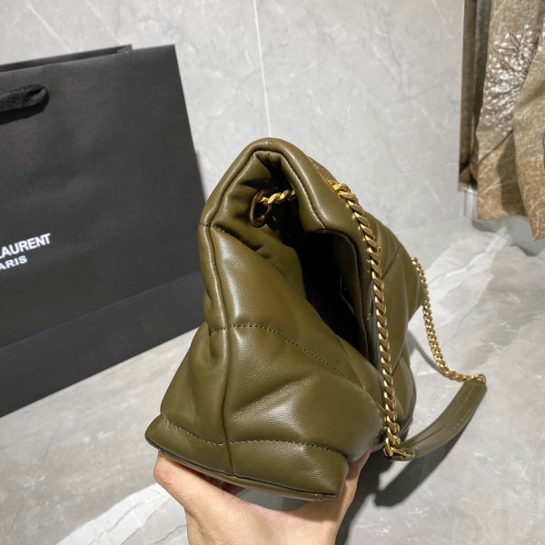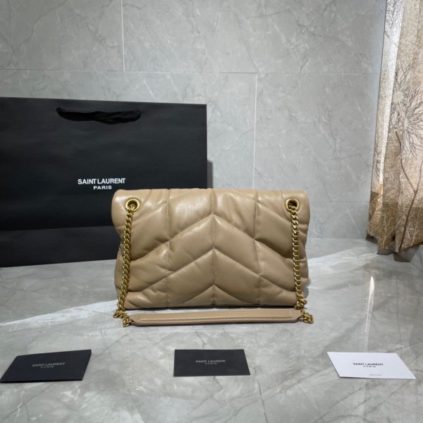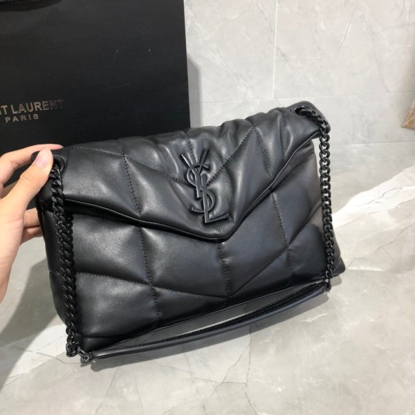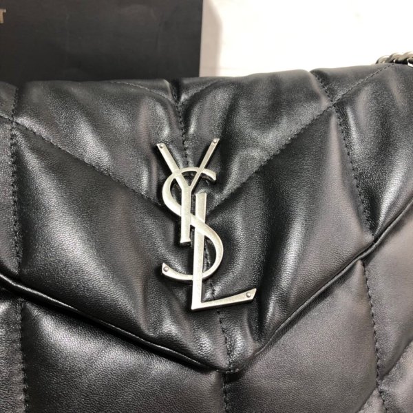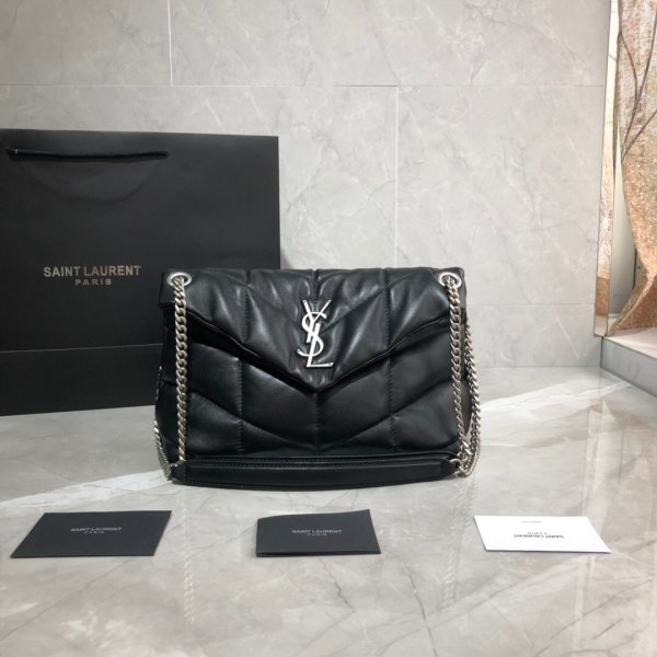 LOULOU PUFFER quilted lambskin Borse, made of 100% lambskin, soft and delicate, as if embracing clouds; L’hardware classico del logo, della catena e del bottone è tutti realizzati in materiale in metallo spazzolato d’argento, consistenza opaca opaca ed è chic.